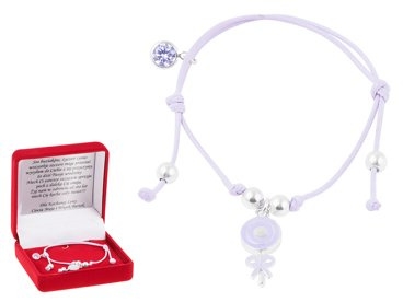 Oferowana bransoletka to nie tylko piękna biżuteria, ale także symbol miłości i czułości, które zostaniesz z dzieckiem na zawsze. Wybierz naszą bransoletkę dziecięcą sznurkową pr. 925 z fioletowym lizakiem i kokardką DEDYKACJA, a obdarowywana osoba z pewnością poczuje się wyjątkowo!