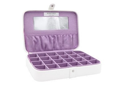Szkatułka została zaprojektowana z myślą o maxymalnej funkcjonalności. Wyposażona w liczne przegródki, duże lusterko oraz praktyczną kieszonkę na wieczku, pozwala na komfortowe przechowywanie biżuterii oraz innych cennych drobiazgów. Dzięki optymalnemu rozmieszczeniu elementów, każda rzecz ma swoje miejsce, co ułatwia szybki dostęp do ulubionych akcesoriów.