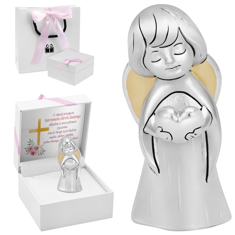 Przedstawiamy figurkę anioła z sercem, która sprawi, że każda chwila związana z Chrztem Świętym stanie się niezapomniana. To wyjątkowy upominek, który zachwyci zarówno malucha, jak i jego rodziców. Jej subtelny wygląd i anielski urok czynią ją idealną dekoracją dziecięcego pokoju, nadając mu ciepła i magii.