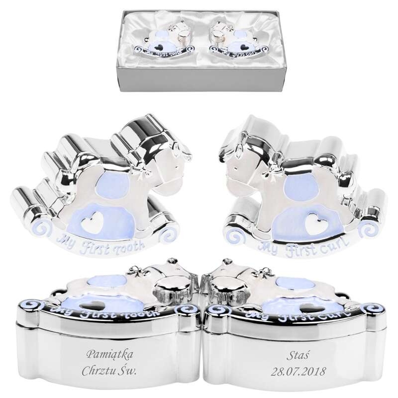 Wybierz koniki błękitne szkatułki na ząbek i pierwszy pukiel włosów, aby stworzyć unikalną i piękną pamiątkę z dzieciństwa Twojego maluszka. Zainwestuj w pamiątkę, która będzie towarzyszyć Wam na zawsze!