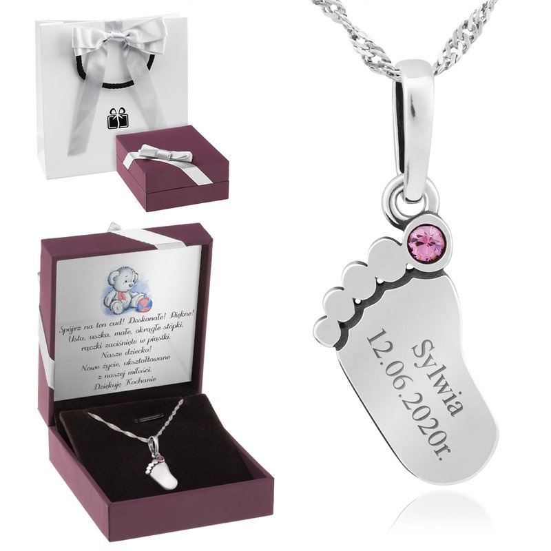 Nie czekaj! Wzbogać swoją kolekcję biżuterii o naszyjnik stópka z różową cyrkonią i poczuj magię, jaką niesie ze sobą zarówno jego design, jak i osobisty grawerunek. To więcej niż biżuteria – to emocje, wspomnienia i styl w jednym!