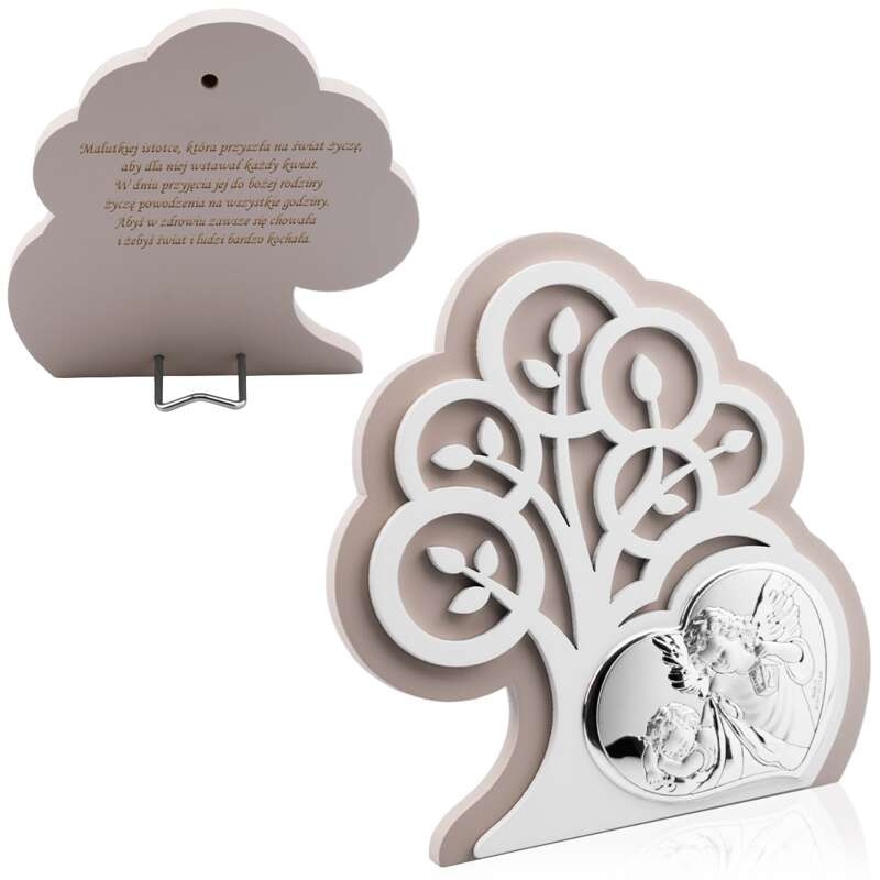 Obrazek srebrny z drzewem życia oraz aniołem stróżem to nie tylko wspaniała ozdoba, ale także wyjątkowy prezent na chrzest, który z pewnością wzbudzi emocje. Dzięki swojej ponadczasowej formie oraz symbolice, stanie się on cenną pamiątką, która towarzyszyć będzie obdarowanej osobie przez lata.