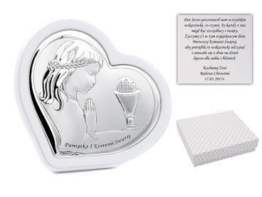 Szukasz wyjątkowego upominku na I Komunię Świętą, który zostanie z dzieckiem na całe życie? Przedstawiamy Ci nasz obrazek srebrny na białym drewnie z motywem dziewczynki. To piękne dzieło sztuki, które doskonale wpisuje się w tę wyjątkową okazję, a zarazem stanowi wspaniałą pamiątkę na lata.