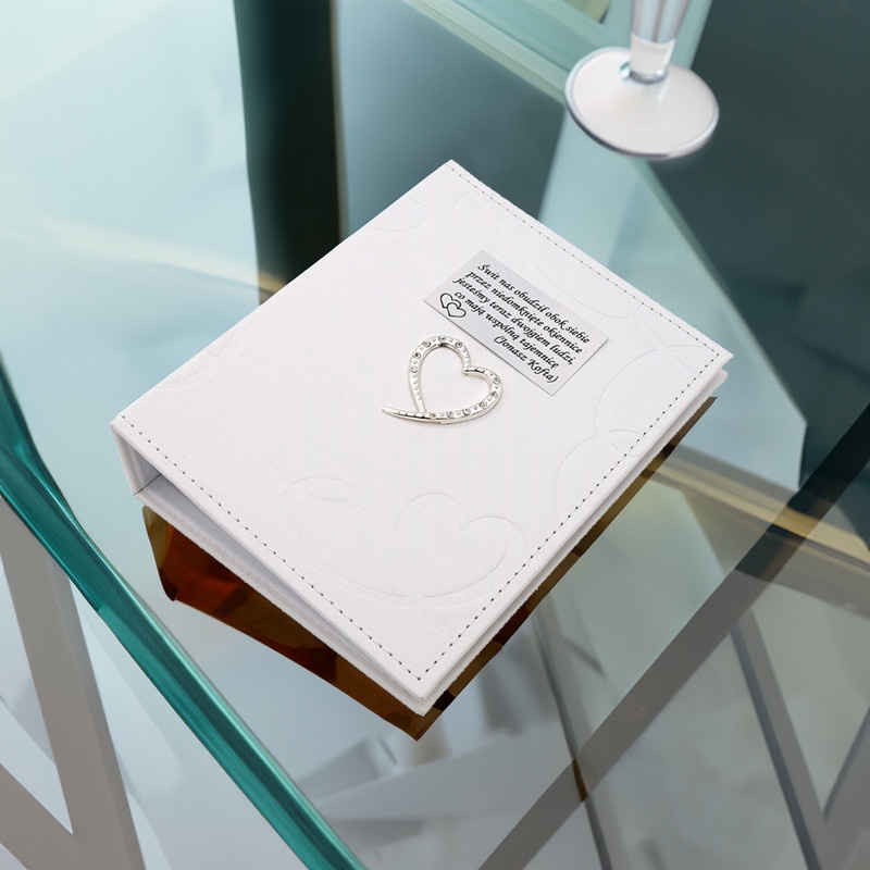 Nasz organizer wyróżnia się nie tylko praktycznością, ale także estetyką. Jego elegancka, a zarazem nowoczesna forma doda wyjątkowego charakteru Twoim przygotowaniom. Grawerunek na okładce sprawia, że jest to także piękna pamiątka, którą Młoda Para z przyjemnością schowa na później.