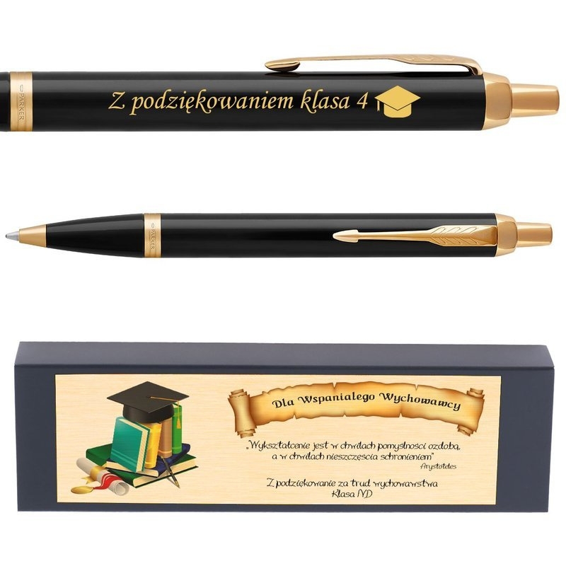 Niezależnie od okazji, Oryginalny Długopis Parker IM Czarny GT z Grawerem to doskonały wybór dla siebie lub na prezent. Łączy elegancję, funkcjonalność i personalizację w jednym. Spraw sobie lub bliskim prawdziwy skarb, który będzie cieszył przez długie lata!