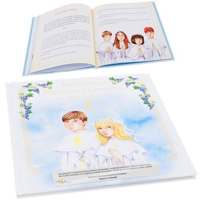 Pamiątka Pierwszej Komunii Świętej Dziewczynka i Chłopiec z indywidualną dedykacją to znakomity wybór każdej rodziny. Niepowtarzalny prezent, piękne wykonanie oraz personalizacja sprawiają, że będzie ona towarzyszyć dziecku przez całe życie. Umożliwi zatrzymanie w pamięci tego pięknego dnia i stanie się wspaniałym wspomnieniem. Wybierz naszą pamiątkę i podaruj niezapomniane chwile!