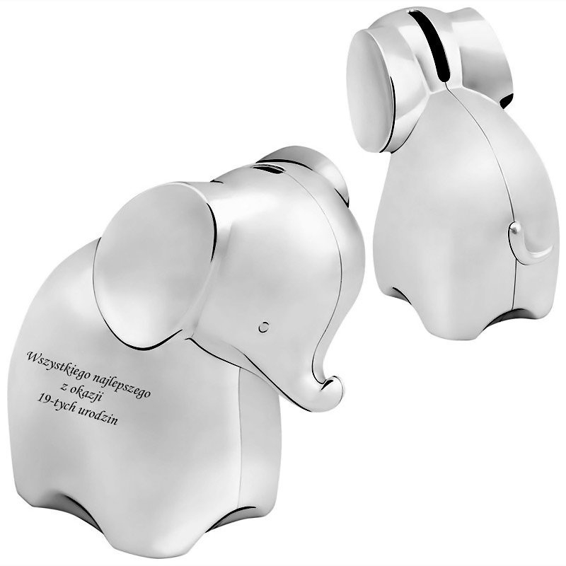 Wybierając posrebrzaną skarbonkę Słoń, decydujesz się na **elegancki, praktyczny i osobisty prezent**, który będzie towarzyszył dziecku przez wiele lat. Dzięki pięknemu designowi oraz możliwości grawerowania, zyskujesz nie tylko skarbonkę, ale również unikalną pamiątkę na całe życie. Nie czekaj dłużej – podaruj dziecku coś naprawdę wyjątkowego!