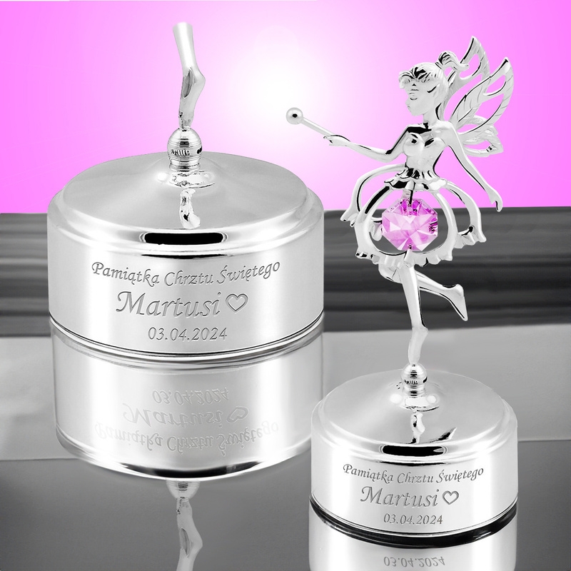 Pozytywka wyróżnia się także **wspaniałym kryształem**, który dodaje jej blasku i elegancji. Gdy pozytywka zaczyna grać, delikatne dźwięki muzyki w połączeniu z migoczącym blaskiem kryształu tworzą atmosferę magii i radości. Dzieci uwielbiają muzykę, a ta pozytywka szybko stanie się ich ulubionym przedmiotem, towarzysząc im w chwilach relaksu i zasypiania.