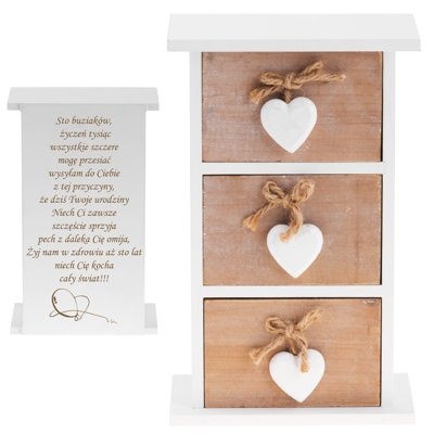 Nie czekaj, spraw sobie lub bliskiej osobie wyjątkowy prezent w postaci Prowansalskiej Szkatułki Retro z trzema szufladami i możliwością personalizacji. To idealne połączenie stylu, elegancji i funkcjonalności, które wniesie do Twojego wnętrza odrobinę magii. Przekonaj się, jak piękne może być przechowywanie Twoich skarbów!