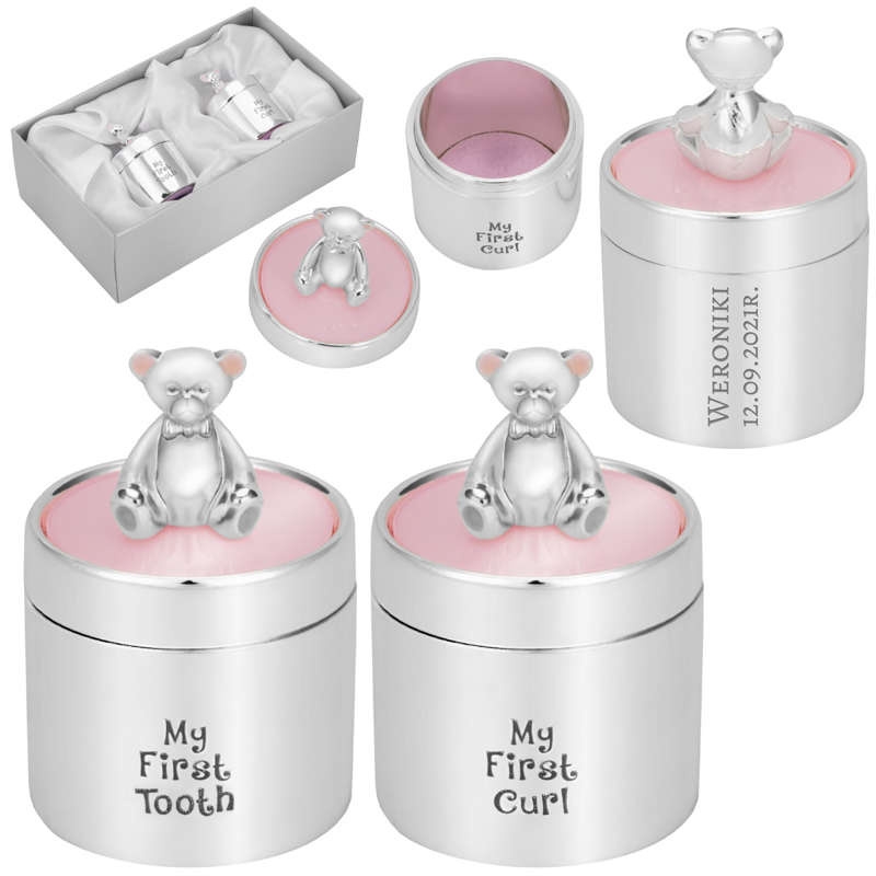 Przechowywanie cennych wspomnień z dzieciństwa jeszcze nigdy nie było tak stylowe! Pudełeczka na ząbki i pukiel włosów z misiami to wyjątkowy sposób, aby zachować najpiękniejsze chwile z życia Twojej małej księżniczki. Wykonane z wysokiej jakości stalowej, posrebrzanej powłoki, te eleganckie akcesoria lśnią i przyciągają wzrok, dodając wdzięku każdemu wnętrzu.