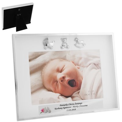 Wykonana z wysokiej jakości materiałów, nasza ramka jest posrebrzana, co dodaje jej elegancji i uroku. Każdy szczegół został starannie przemyślany, aby stworzyć produkt, który zachwyci zarówno obdarowaną osobę, jak i gości. Trzy urocze ikony – Miś, Wózek i Konik – symbolizują beztroskie dzieciństwo i radosne chwile, które warto uwiecznić. W połączeniu z Twoją osobistą dedykacją, ramka staje się nie tylko ozdobą, ale i cenną pamiątką na lata.