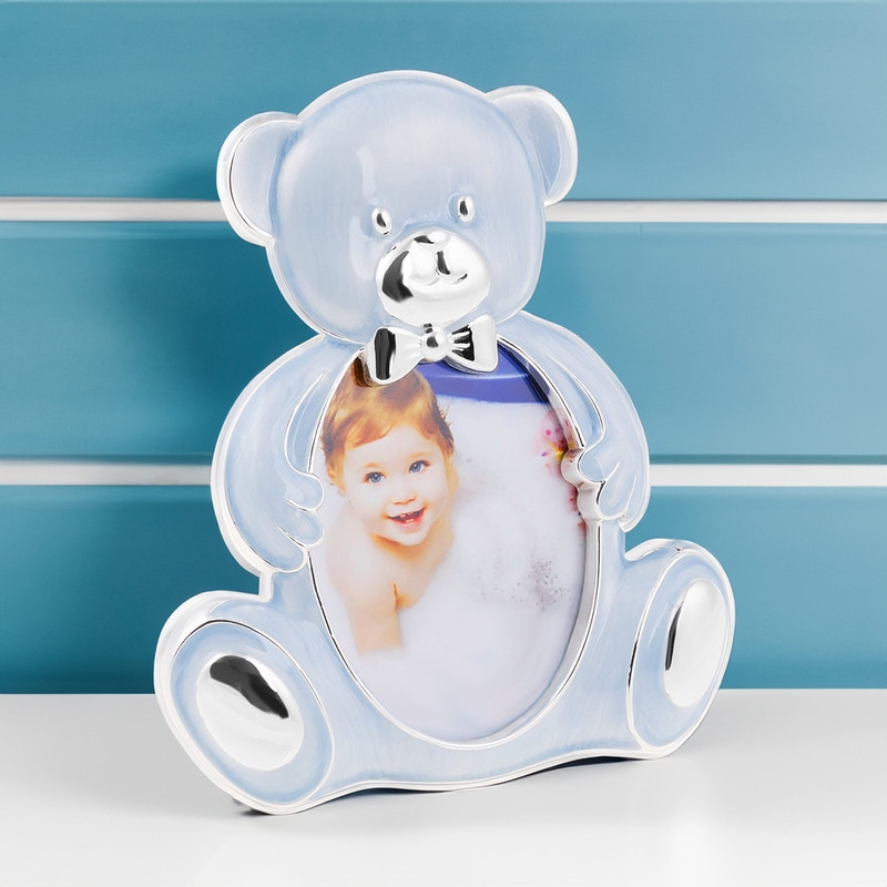 Ta posrebrzana ramka to nie tylko praktyczny przedmiot, ale także elegancki dodatek do każdego wnętrza. Jej ponadczasowy design sprawia, że wkomponuje się w różnorodne style aranżacji, nadając przy tym wyjątkowego uroku. Błękitny miś, będący motywem przewodnim ramki, przyciąga wzrok, wprowadzając przyjemną, dziecięcą atmosferę.