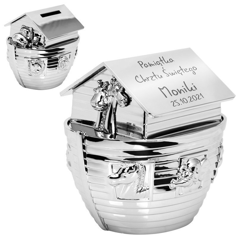 Niech ten wyjątkowy prezent – posrebrzana skarbonka Arka Noego z grawerem – stanie się piękną pamiątką na całe życie!