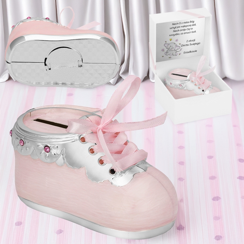 Podaruj wyjątkowy prezent, który zachwyci każdego! Skarbonka Różowy Bucik to idealny wybór na każdą okazję związana z dzieciństwem – niech stanie się nieodłącznym elementem wspomnień!