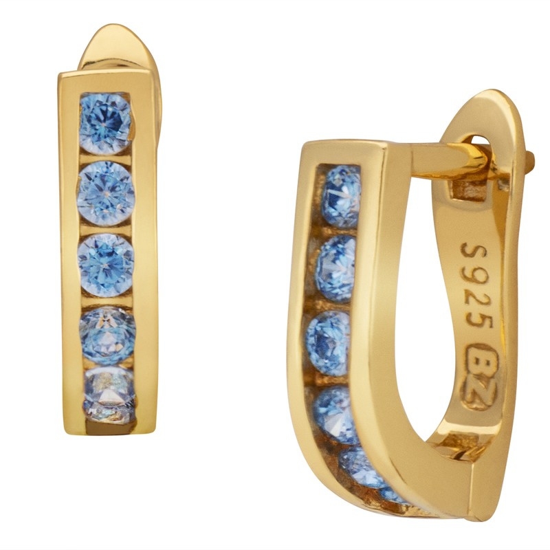 Te pozłacane kolczyki z jasnoniebieskimi cyrkoniami odzwierciedlają najnowsze trendy w biżuterii. Ich delikatny odcień niebieskiego pięknie kontrastuje z żółtym złotem, co sprawia, że są one doskonałym dodatkiem zarówno do codziennych, jak i wieczorowych stylizacji. Bez względu na okazję, te kolczyki dodadzą uroku każdej kobiecie.