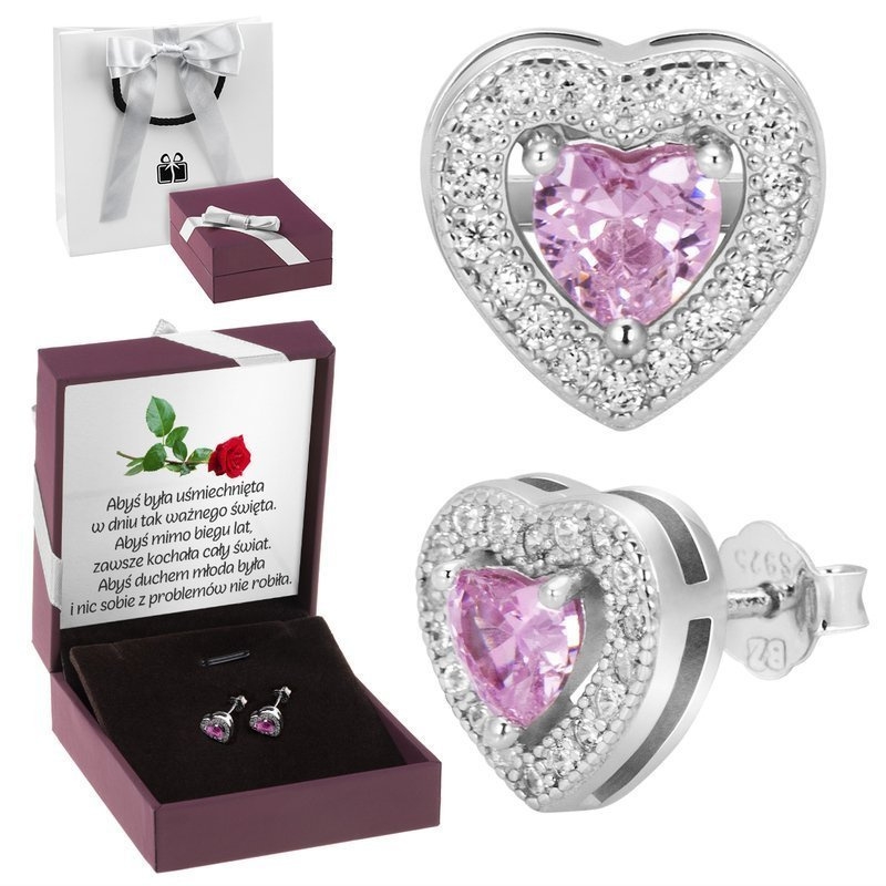 Te piękne kolczyki są wykonane z srebra o próbie 925, co zapewnia ich trwałość i wysoką jakość. Ozdobione różowymi cyrkoniami w samym sercu oraz otoczone białymi kamieniami, pięknie lśnią w świetle, dodając blasku każdej stylizacji. Niezależnie od tego, czy podarujesz je na urodziny, rocznicę czy Dzień Matki, będą doskonałym dopełnieniem każdego stroju.