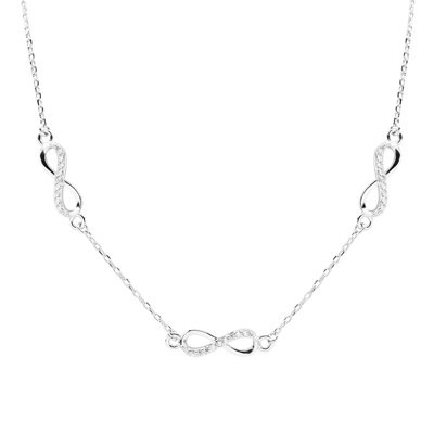 Nie czekaj dłużej! Odkryj magię naszego Srebrnego Naszyjnika pr. 925 Nieskończoność z cyrkoniami i pozwól sobie na odrobinę luksusu w codziennym życiu. Dzięki swojemu eleganckiemu wyglądowi i uniwersalności, będzie stanowił doskonały dodatek do każdej stylizacji, a także niezapomniany prezent dla wyjątkowych osób w Twoim życiu.