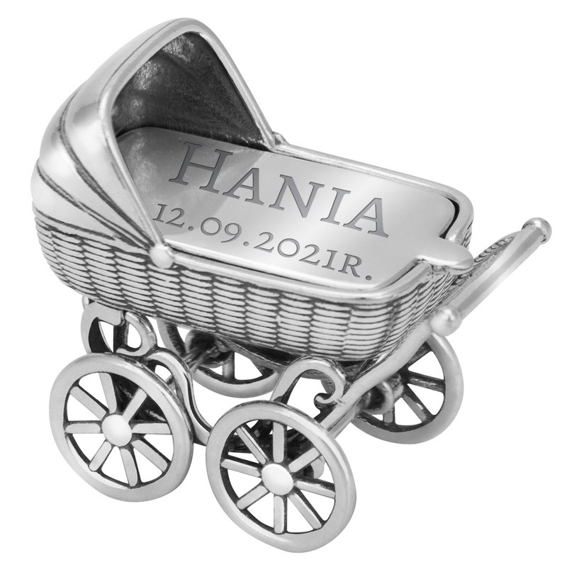 Odkryj wyjątkową srebrną pamiątkę, która stanie się symbolem najpiękniejszych chwil w życiu Twojego dziecka. Nasz uroczy wózeczek, wykonany z srebra próby 925, to nie tylko elegancki dodatek, ale także emocjonalna pamiątka, która przechowa wspomnienia na lata.