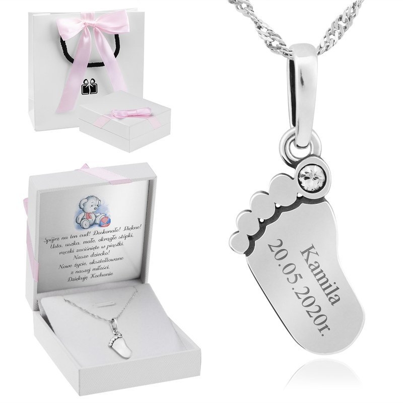 Zawieszka stópka z białą cyrkonią to doskonały prezent na wiele okazji – urodziny, rocznice, Dzień Matki, czy narodziny dziecka. Dzięki możliwości grawerunku sprawisz, że Twój prezent nabierze wyjątkowego znaczenia i stanie się niezapomnianą pamiątką. To nie tylko biżuteria, to emocjonalny dar, który będzie noszony z dumą przez lata.