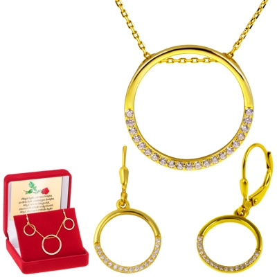 Zestaw naszyjnik + kolczyki okrąg z cyrkoniami Srebro 925 Dedykacja to idealny wybór dla każdej kobiety, która ceni sobie nie tylko piękno, ale także osobisty akcent w biżuterii. Wybierz jakość, elegancję i unikalność, która będzie towarzyszyć Ci w każdej chwili!